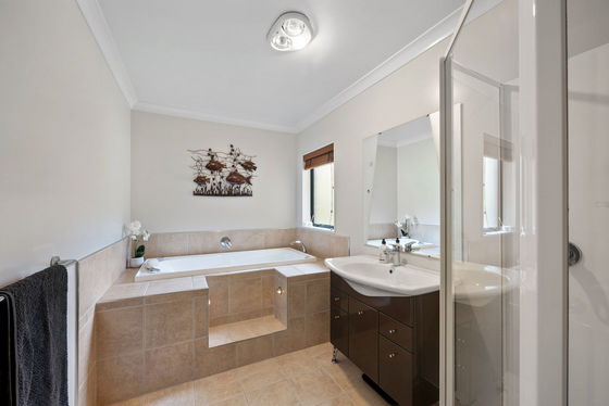 A private master bedroom boasts a walk-in robe and ensuite, providing a perfect retreat, while three additional bedrooms are well-serviced by a contemporary bathroom and separate powder room. Ample storage is a standout feature, with internal access to a large double garage, complete with a convenient laundry area and adjoining carport.
