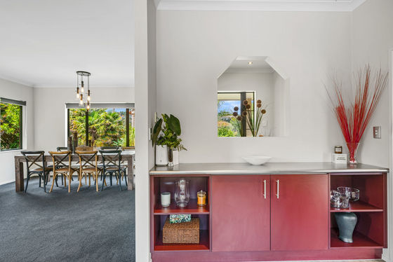 Nestled between the vibrant townships of Kumeu and Waimauku, this elegant 4-bedroom, 2-bathroom residence offers an ideal sanctuary for those seeking a balanced blend of privacy and convenience. The spacious kitchen flows seamlessly into the dining and family room, which features a cozy wood fire, creating a warm and inviting atmosphere. A separate living area enhances the home's layout, providing excellent indoor-outdoor flow for effortless entertaining. The separate large barn presents limitless possibilities with even more space to host family and friends or pursue hobbies and projects.