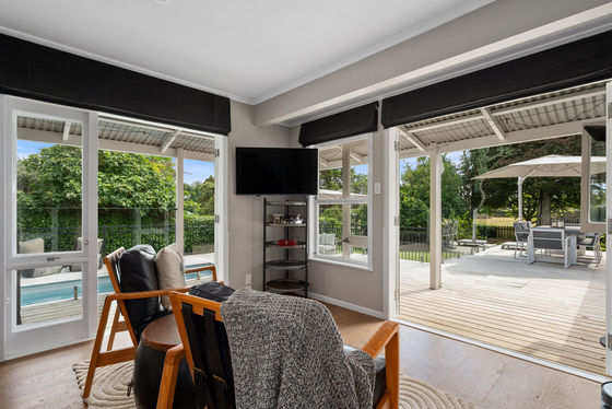 Presenting 47 Koraha Road, a captivating family residence situated in the heart of Kumeu. This elegantly refurbished home exemplifies a harmonious blend of contemporary family living and serene tranquility. Accessed via a picturesque tree-lined driveway, the property is set well back from the road, offering a welcoming sense of privacy and charm from the outset.