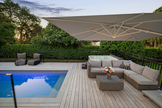 Step inside to be welcomed by an elegantly designed open-plan living area that balances comfort and style, perfect for relaxation or entertaining. The modern designer kitchen, adorned with ample counter space, allows you to cook dinner while savouring the captivating views that stretch across the generous decking toward the inviting swimming pool and spa complex.