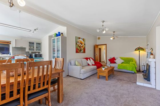 The spacious kitchen is perfect for the keen cook or baker, flowing into open plan dining and family areas warmed by a cosy fireplace. Step down into the lounge and out to your covered deck, where serene views of established gardens, mature trees, and birdlife create your own private retreat.
