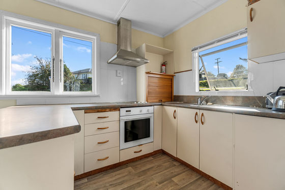 PRICE REDUCED: Welcome to 13 Karaka Road. Nestled on a generous 1,057sqm section, this charming 1950s home blends comfort, practicality, and a hint of country charm. With 93sqm of thoughtfully designed space, it's perfect for first-home buyers, downsizers, or savvy investors looking for a solid opportunity. Inside, you'll find two bedrooms, a bathroom with a separate toilet, and an open-plan living area that's got elevated views. The kitchen is equipped with an electric cooktop, wall oven, and rangehood.