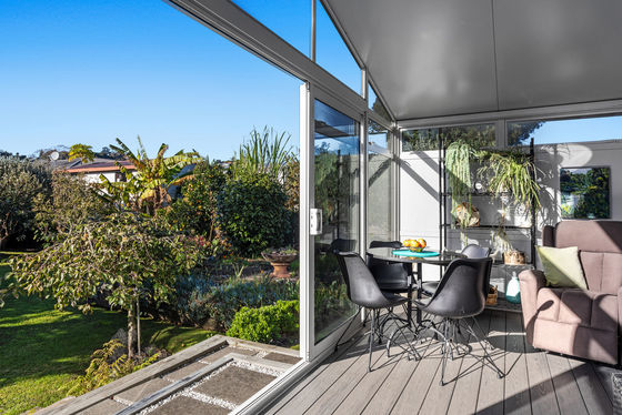 A large, sun-drenched conservatory provides the perfect spot to unwind year-round while enjoying the lush garden outlook. Step outside to a covered outdoor area-ideal for entertaining, barbecues, or simply enjoying a quiet morning coffee, rain or shine.