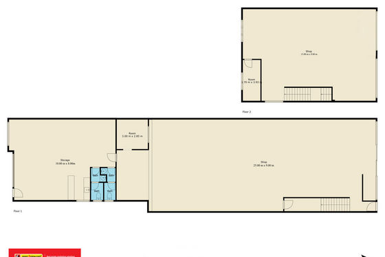 In total the buiding is 467m2 more of less, the first floor showroom has street frontage and the second floor has a bathroom and kitchenette. Plus out back is a warehouse/loading bay.