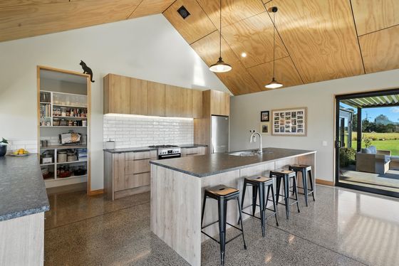 From the moment you arrive, the striking timber and dark corrugated cladding signals something special, and that attention to detail continues throughout. Designed for easy entertaining and relaxed living, two outdoor spaces cater to every occasion, from morning coffee through to evening BBQ's! A west-facing patio with louvred gazebo and spa plug makes the perfect spot to soak in the views. Practicality is well considered too, with a large double garage including attic storage and a powered three-bay shed (one enclosed) alongside a two-bay shed (one enclosed). With piped water and two tanks onsite, the property is built to support lifestyle living with ease.