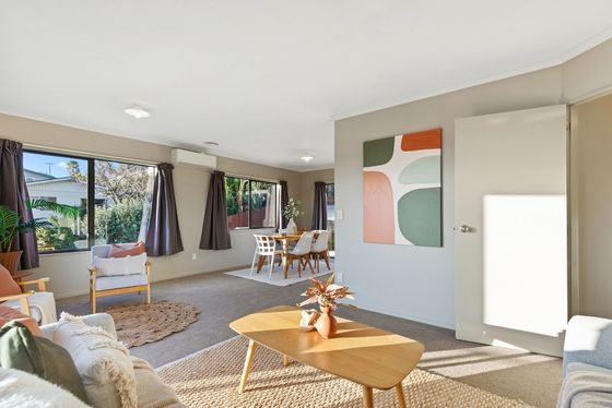 Set back from the road, this elevated four-bedroom, two-bathroom home is a rare blend of sun-soaked serenity and unbeatable location. From the moment you step into the spacious living area, you'll be greeted by panoramic views to the Kaimai Ranges, glowing in golden hues by day and drenched in northwestern sunset by evening.