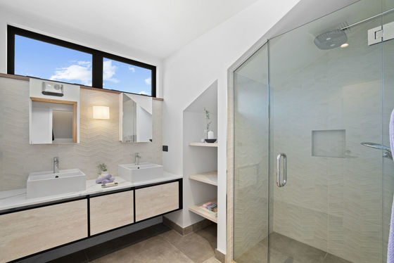 The interiors are elegantly understated with clean lines, exposed textures, and thoughtful finishes to make the home equally suited to laid-back living or elevated entertaining whilst the low-maintenance landscape plan adds to the overall design and curbside presence.