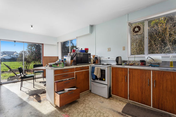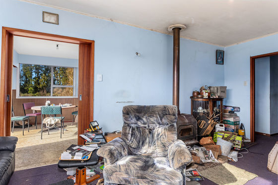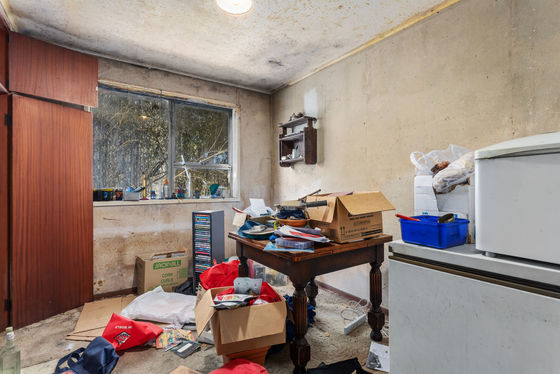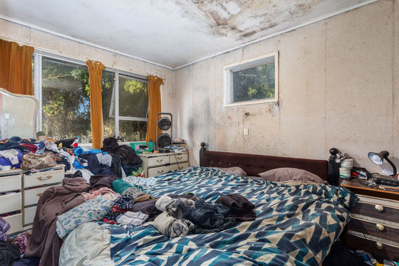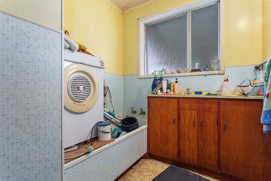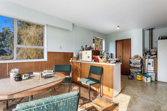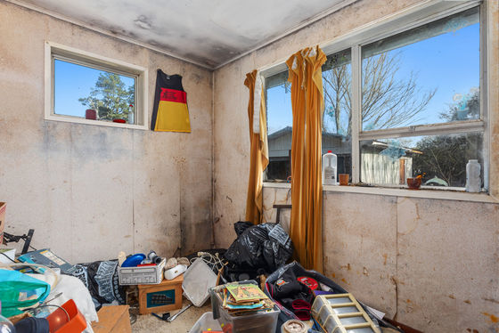 A 120sqm dwelling in need of extensive repair, featuring 4 bedrooms, bathroom with bath and basin, separate shower room, separate laundry, and an open-plan kitchen/dining area with a wetback chippy water heater.