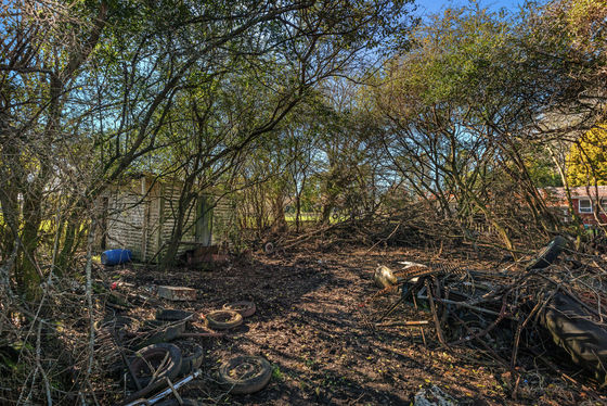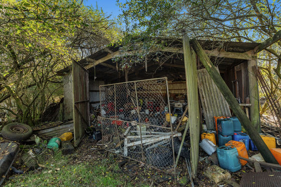 The home and outbuildings are in poor condition, with extensive damage and significant amount of clean up required across the site.