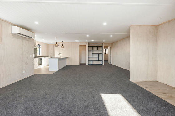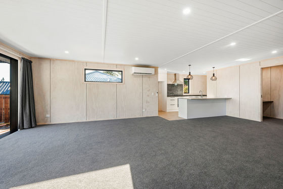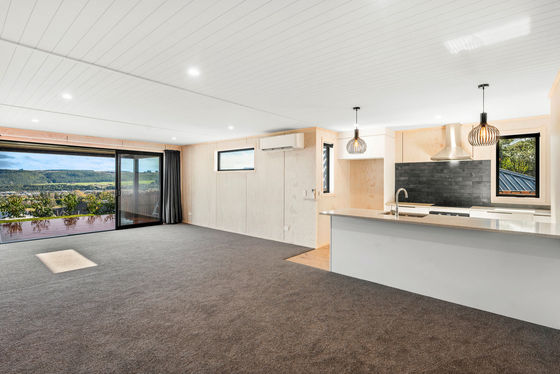 Step inside and be impressed by the thoughtful, open-plan layout"where clean architectural lines, natural ply finishes, and full-height glazing create a warm, minimalist aesthetic. The central living zone flows seamlessly between the kitchen, dining, and lounge, featuring a sleek island bench with breakfast bar, stylish pendant lighting, induction hob and double-door fridge and dishwasher, walk-in scullery and soft-close cabinetry, and a separate office nook for remote work or study. Plus, a heatpump for year-round comfort.