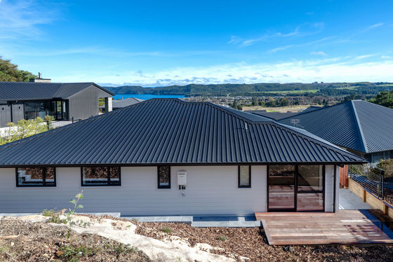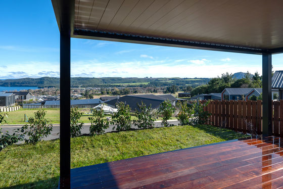 Positioned on a easy-care, fully landscaped section backing onto lush native bush, this contemporary home enjoys peace, privacy, and panoramic views over Lake Taupo and the Kinloch village below. The elevated setting delivers a front-row seat to nature and light-filled living year-round.