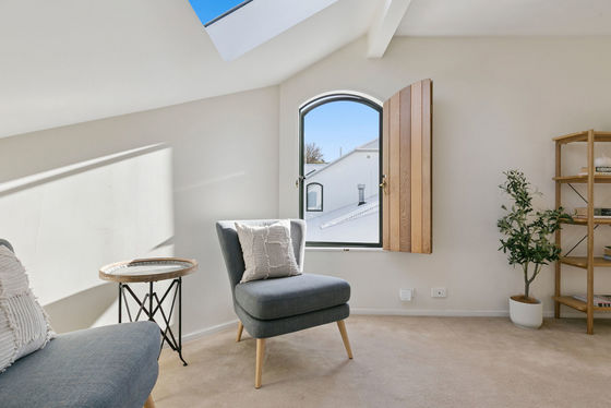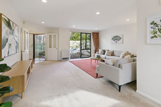The living area has a gas heater, space for the largest of sofas and sliding doors to a west facing private courtyard.