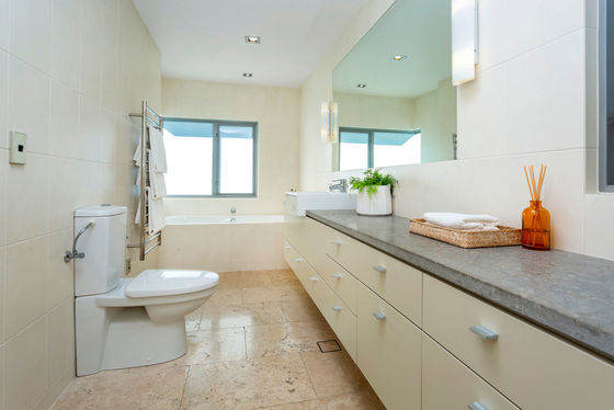 On the upper level, two bedrooms overlook the courtyard and share a generous family bathroom, ideal for teenagers or guests seeking privacy. On the ground level, you have a luxurious master suite with a walk-in wardrobe and ensuite, as well as two additional bedrooms with a shared family bathroom.