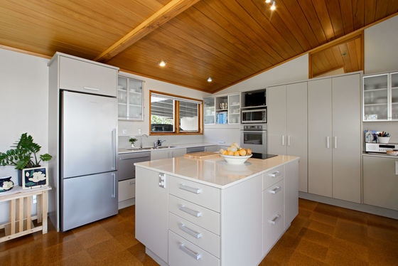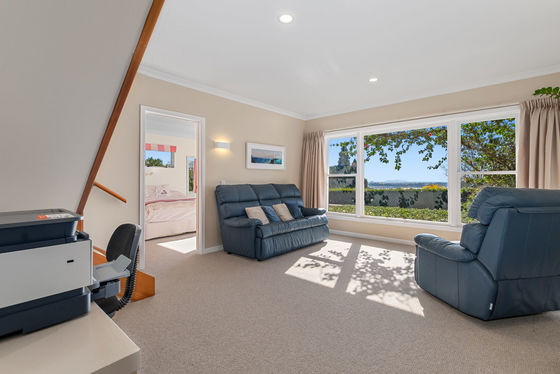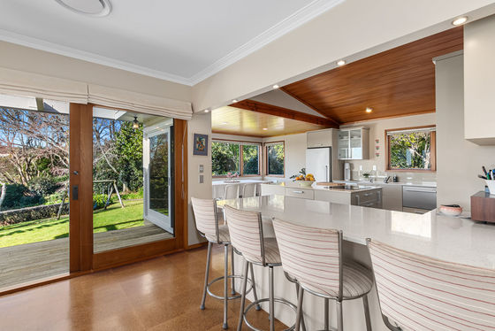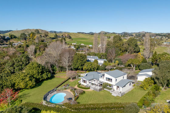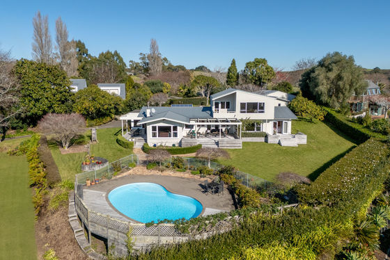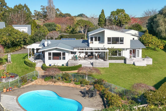 The land area has its own charming spots. One is the gently winding tree-lined drive for 60 meters from the quiet Waitaha road to the house. Closer to the home, the recreational focus is the large, flat lawn, vegetable garden, five mature avocados, fruit trees and a traditional kidney-shaped inground swimming pool, which is watched over from the house and decks. An idyllic playground for young and old.