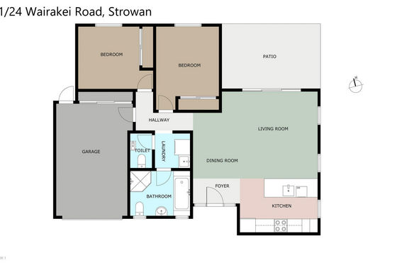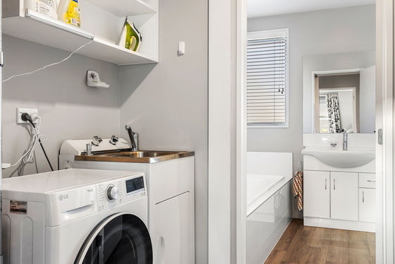 Inside, you'll find two double bedrooms, a well-appointed bathroom, with the added convenience of two toilets. A separate laundry adds practicality and additional storage. The generous open-plan kitchen flows seamlessly into the dining and living area, creating a warm and inviting space.