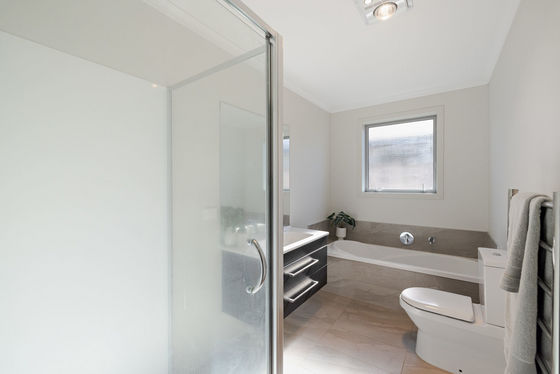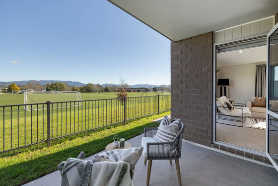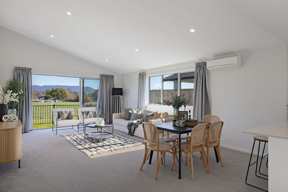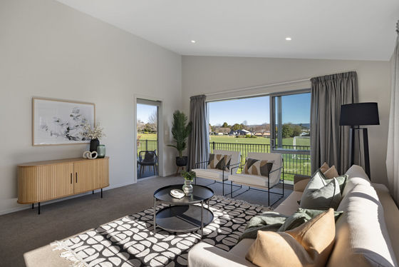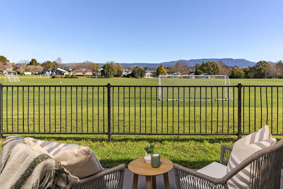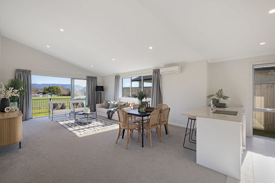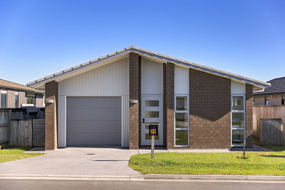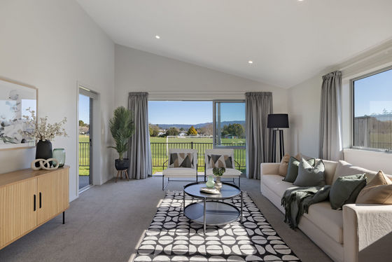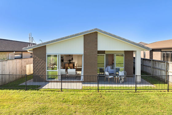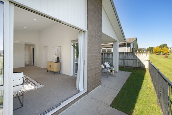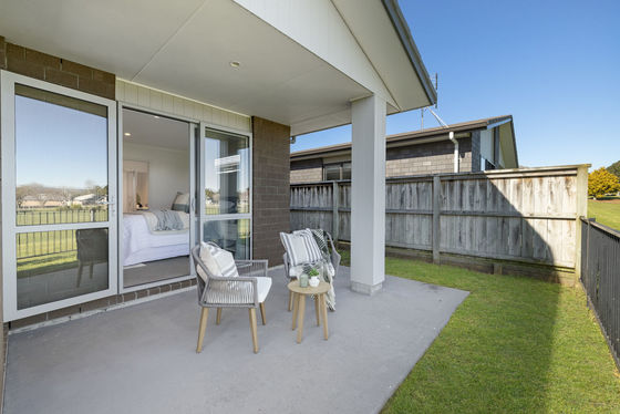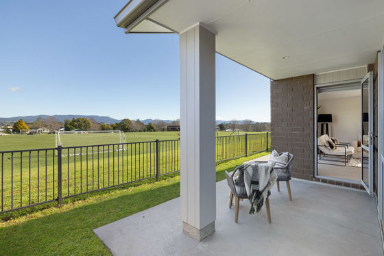 The efficient layout revolves around the spacious open plan living and dining areas with high raking ceilings and a wall mounted heat pump. Sliders and a door connect easily to a covered patio facing the rolling green acreage of Omokoroa sports grounds. This sunny spot is the perfect alfresco zone for barbecues, relaxing with a drink, or just enjoying your ringside seats for the game beyond the fence line. The open plan kitchen with dual sinks is a trendy combination of white subway tiles, composite stone benchtops, ample storage and modern appliances. Both double bedrooms are fitted with built in wardrobes while the master bedroom with ensuite also enjoys connection to the patio. The main bathroom echoes the same stylish décor and includes heated towel rail, shower, floating vanity and a bathtub. A single garage is internally accessed and integrates the laundry.