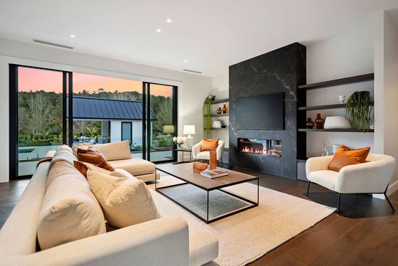 Generous open plan living captures incredible sun all day and the outdoor undercover entertaining room has a large open fire. This area is designed to enjoy in all weather, and overlooks the resort-inspired swimming pool complex and pool house with an outdoor kitchen and bathroom... The sunsets and setting are simply extraordinary.