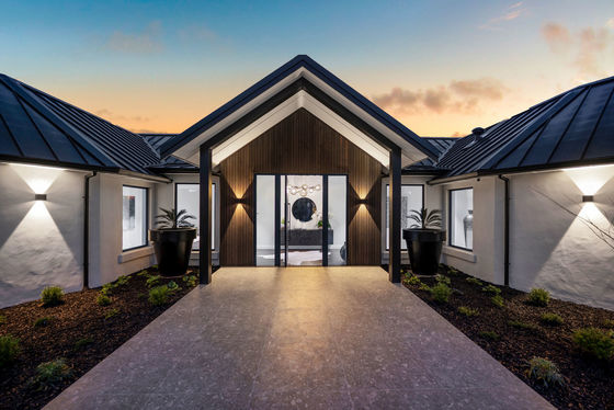 An air conditioning unit that changes the air in your home every three hours for health benefits, high spec water filtration, underfloor heating, instant boiling water, ECC lighting, security, high speed fibre, electronic gates and the latest integrated home control system have all been planned to perfection. Three-car garaging has enormous built-in additional storage and cabinetry, so it is ready for multiple uses or a home gym if desired.