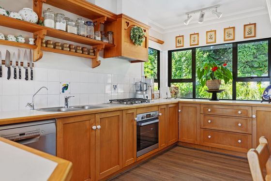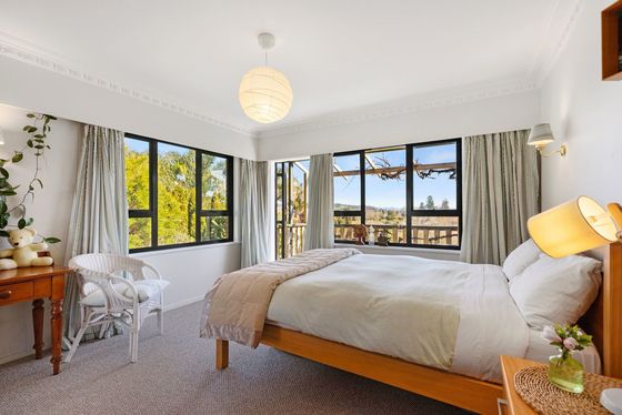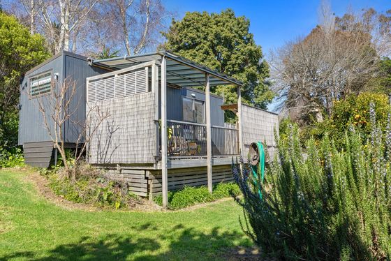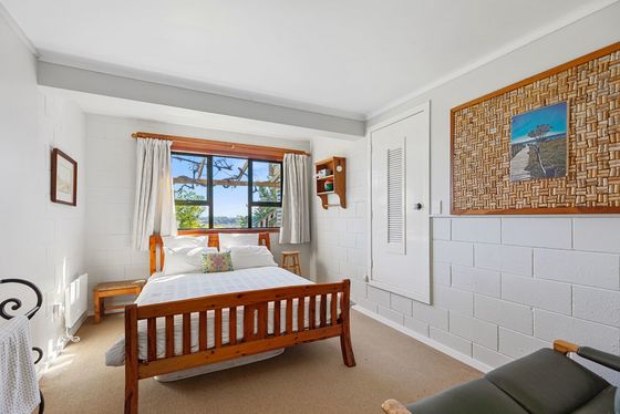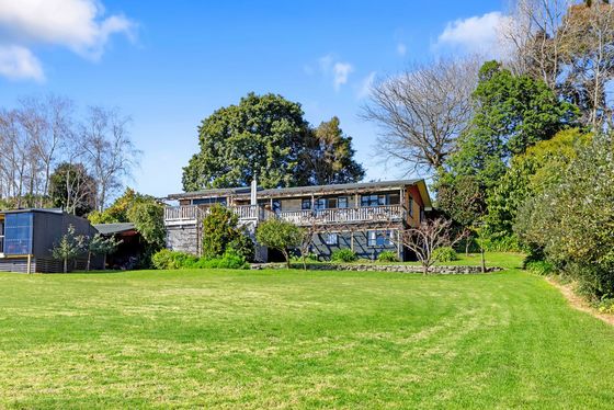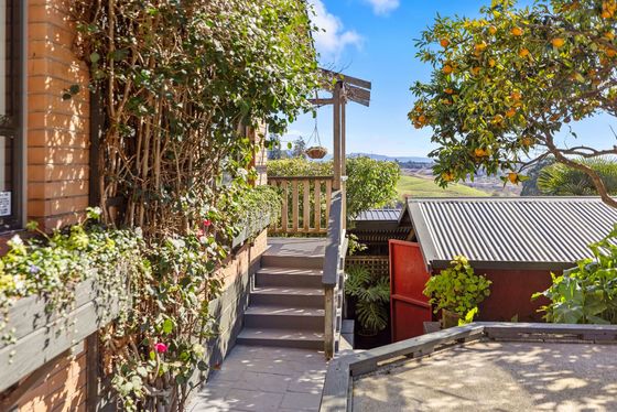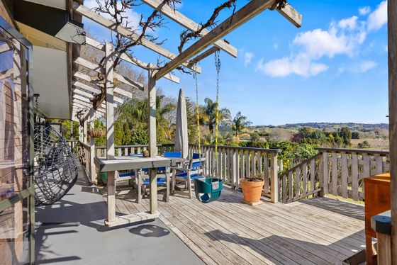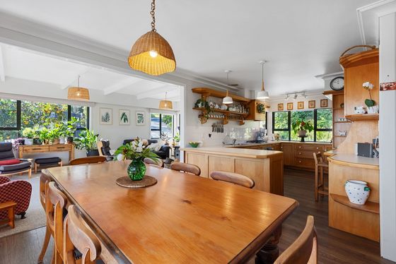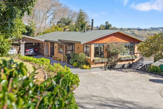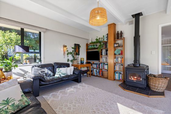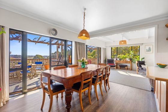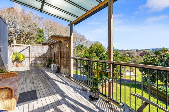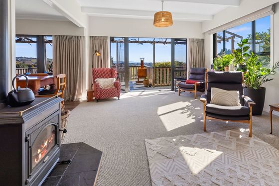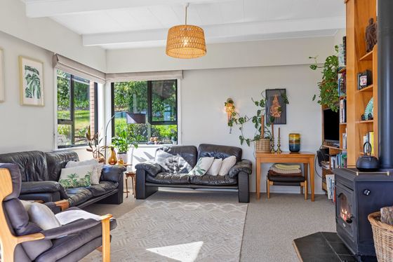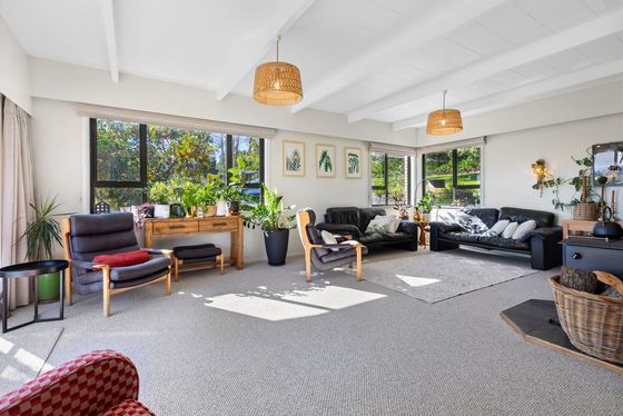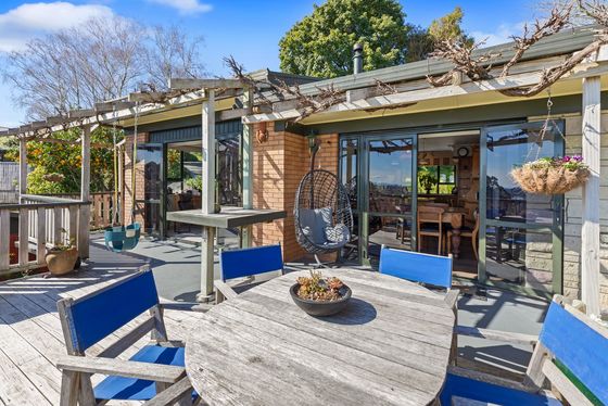 The main home is 4 bedroom 2 bathroom, or it could be considered a 3 bedroom home with a self-contained studio. The home features European retro styling, with Hinuera stone, brick and timber cladding. Generous living areas spill out to sunlit outdoor spaces, decking and sunsets, while a self-contained studio downstairs provides an additional bedroom or rental income.