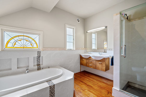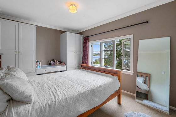 In keeping with its heritage charm, the main bathroom and kitchen are fitted with stunning leadlight windows, sourced by the vendor from Tauranga's Historic Village. Each room offers its own unique outlook, adding to the home's appeal.