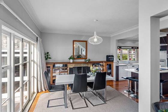 Inside, the home showcases timeless features including high stud ceilings, original timber joinery, and polished wooden floors that flow through the entrance, kitchen, dining, and living areas. A sun-drenched sunroom provides the perfect spot for an afternoon drink or quiet read.