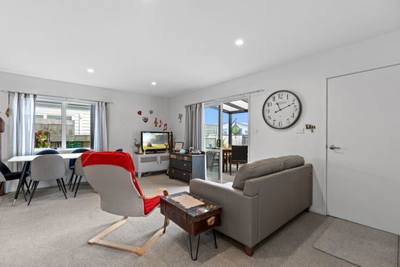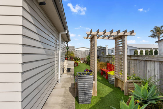 Positioned on a desirable corner site, the two bedroom home features spacious double rooms, a light filled, open plan layout, and a modern, generously sized bathroom. The living area flows effortlessly to a covered patio where you can relax with a coffee or entertain friends, while a heat pump ensures year round comfort. A single garage, along with additional off-street parking, provides convenience and security.