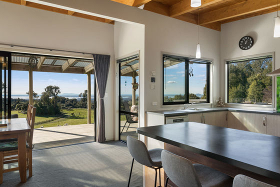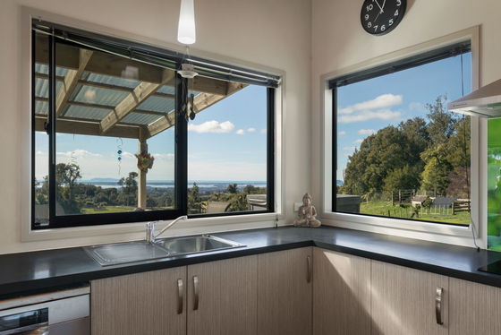 The modern four-bedroom home has it all. A formal entrance leads you into open-plan kitchen and dining, which flows onto expansive decking where you can gaze across ever-changing views including Matakana Island, Omokoroa, Mount Maunganui, and more.