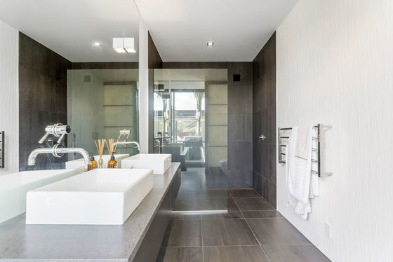 Where country meets the beach, rural views, cows in the nearby paddocks and a mixed backdrop of both native bush and golf course reserve, it makes a statement of solid, sculptural form which is finely attuned to the landscape.