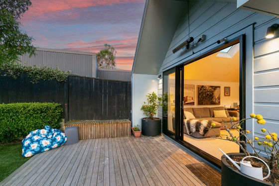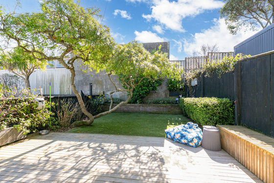 - Fabulous al fresco flow to private decking and an enchanting garden courtyard that's as practical as it is picturesque, complete with durable, maintenance-free artificial lawn, griselinia, hydrangeas and citrus trees, and a magnificent kowhai for tuis to feast on