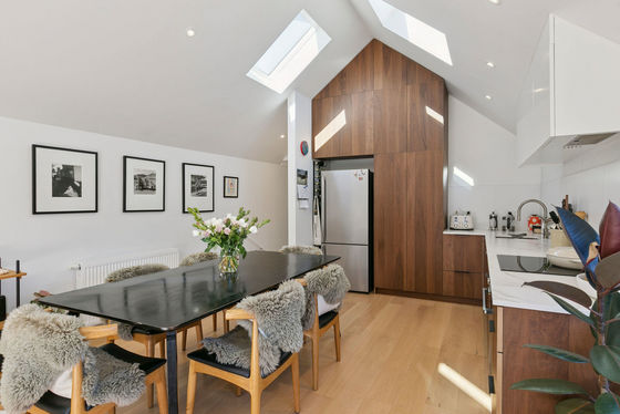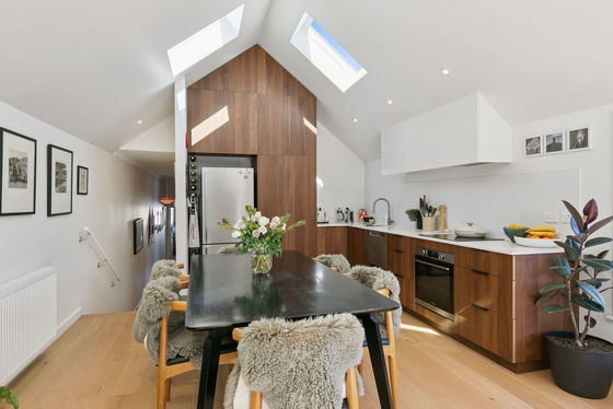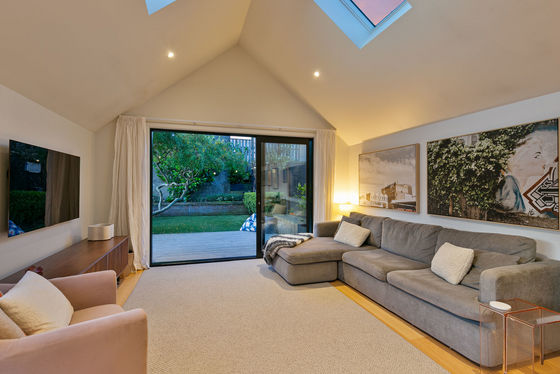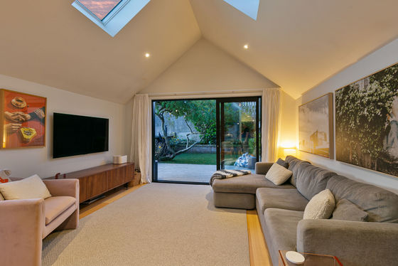 - Exquisitely modernised living/dining and entertainers' kitchen with chapel ceiling and skylights for natural light and spaciousness, and northwest views over villas and cottages to the Brooklyn wind turbine