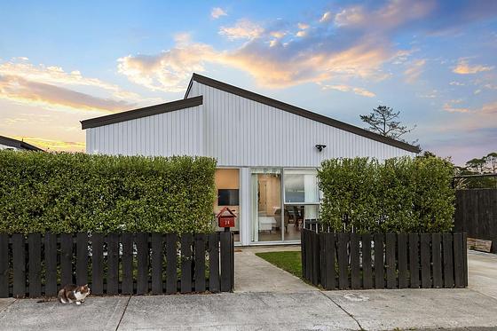 Tucked away at the quiet end of a private lane, this little charmer is modern, clever, and full of personality. With its hedged front yard, tidy lawn, and appealing street presence, it sets the tone before you even step inside.