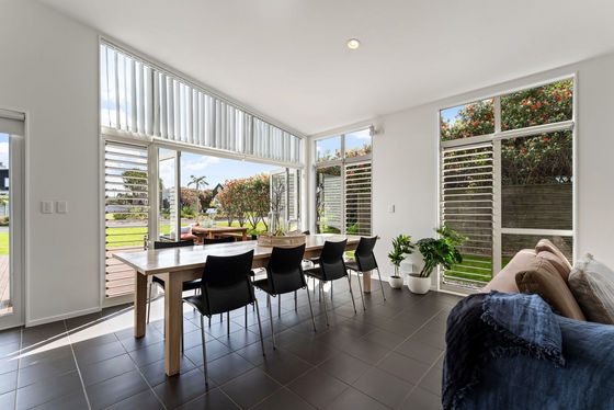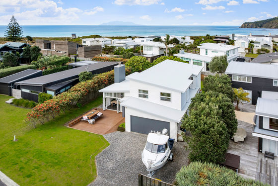 At Omaha's southern end, just a two-minute stroll to the surf via a private "neighbours-only" walkway, this two-level home is all about relaxed, practical living.