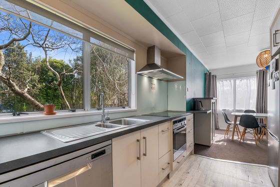 Step inside and you'll find a light, modern interior with natural tones that create an instant sense of calm. The galley-style kitchen is a real standout with its soft blush accents, sleek cabinetry, modern appliances, and plenty of bench space.