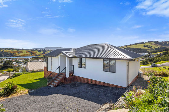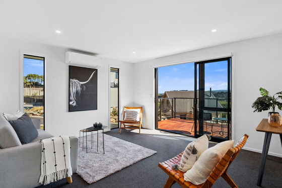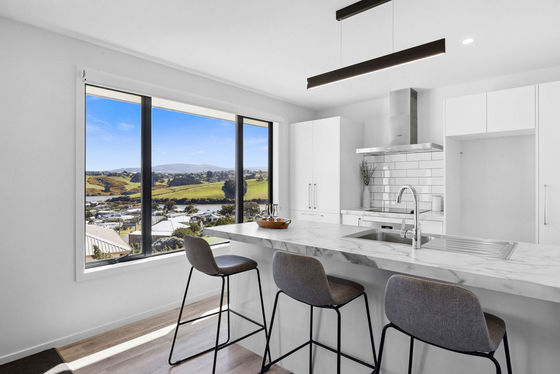 At the end of a quiet cul-de-sac in a sought-after new subdivision, this stylish three-bedroom, two-bathroom home (built in 2022) offers modern living in a prime position. Elevated to capture all-day sun, it enjoys sweeping views over Tomahawk Lagoon, the beach, and the hills beyond.