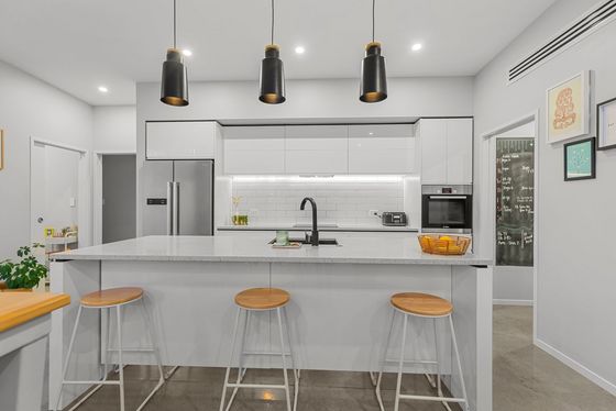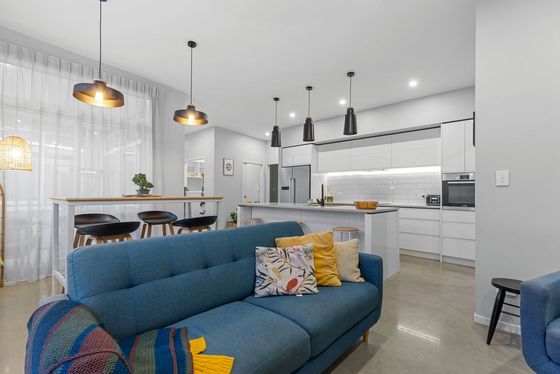 Step inside to soaring ceilings and light-filled interiors that celebrate space. Two generous living zones, both formal and informal, provide flexibility for entertaining or relaxed family life, while a cleverly designed office nook adds practicality.