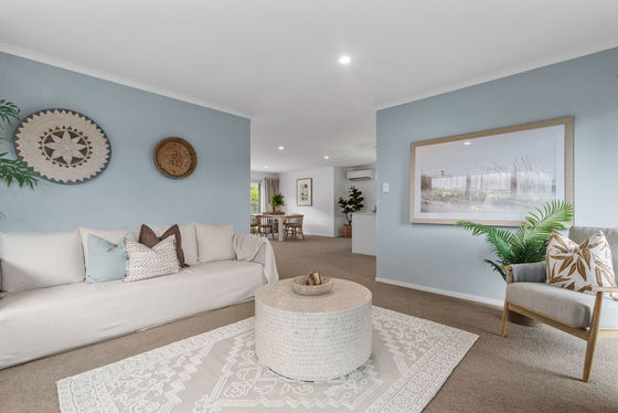 With a floor plan of approximately 207 sqm, there's ample room for the family to spread out and make the most of a variety of useful spaces. A neutral interior décor is elegant and versatile with carpeted open plan living and dining areas featuring a cosy heat pump and effortless flow through the ranch sliders to a large sun-drenched deck and flat lawns. Another lounge provides a second more peaceful retreat while the open plan kitchen is a social hub with plentiful cabinetry, stainless steel appliances and extensive benchtops satisfying creative foodies. Family accommodation is spaciously appointed with double bedrooms incorporating a sizable master with exit to the patio, compact ensuite and walk-in wardrobe. The main bathroom combines shower, floating vanity, towel rail, tile clad bathtub while the toilet is separate. Internal access double garaging incorporates the laundry while off street parking allows for the boat or jet ski trailer.