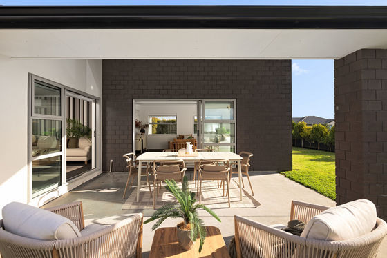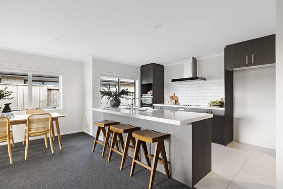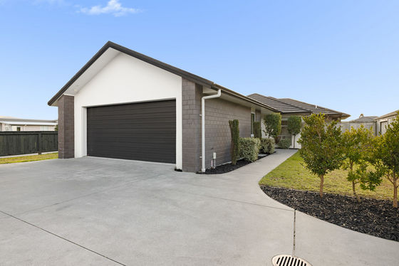A distinctive monochromatic aesthetic defines the smart décor of a 228 sqm (approx.) interior with deep charcoal carpets agreeably contrasting with white walls and blinds. Generous open plan living and dining room with a heat pump boasts seamless outdoor flow to the patio while an upgraded kitchen sports classic subway tile back splash and has bonus walk in pantry. With stainless steel appliances, composite stone benchtops and ample cabinetry, this culinary zone is well equipped to cater for people who are ready to party. A separate media lounge adds further socialising options to the mix, and this again has sliding doors to the same covered patio. Four double bedrooms includes the master with ensuite, walk in robe and its own intimate outdoor coffee spot. A family bathroom combines floating vanity, heated towel ladder, bath, and shower while the toilet is handily separate here. Internal access double garaging has integral laundry, and the home incorporates lots of storage for the usual family clobber.