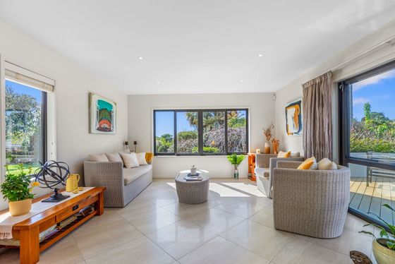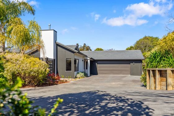 Evolving into a light-filled, modern, and stylish retreat over the past 10 years, this much-loved home has been carefully modernised and extended to ensure enjoyment for years to come. Constructed with aerated concrete panels on a cavity and complemented by striking plywood features, the exterior presents a modern yet timeless aesthetic. Step inside to an inviting open-plan kitchen, dining, and family area, where bi-folding windows and doors create seamless indoor-outdoor flow - perfect for entertaining and year-round living. A private formal lounge, complete with a cozy gas fire, provides the perfect haven for movie nights or quiet relaxation. Year-round comfort is assured with full double glazing and gas hot water. The sleeping arrangements include three generous bedrooms, all with built-in wardrobes. The spacious master suite boasts a walk-in robe and ensuite, while a separate office makes working from home both practical and enjoyable. Tasteful neutral décor throughout provides a versatile backdrop to complement any style. Set on a substantial 3,221sqm (more or less) elevated site, this home enjoys both sunshine and privacy. The flat-to-rolling grounds feature established plantings, an assortment of fruit trees - including fig, lemon, and apple - and expansive lawns ideal for children and pets. Homes of this calibre in such a sought-after location are rarely offered to the market. Join the many long-term neighbours who have discovered the enduring appeal of this neighbourhood and secure a stunning family residence you'll never want to leave.