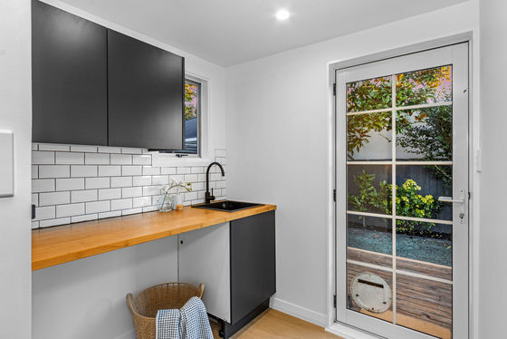 A contemporary laundry drives practicality, while a rear deck and lawn offer a low-maintenance answer when outdoor living calls.
