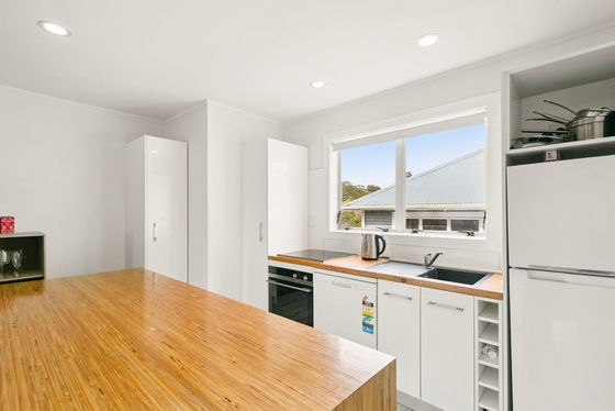 Sunny, north-facing, and filled with natural light, the home features an open-plan kitchen, dining, and living area that flows effortlessly onto a lovely deck with harbour views. Two bathrooms and internal access from the garage add to the convenience.