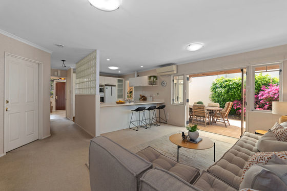 Three family friendly bedrooms, including the sprawling master suite with ensuite, all open to the North facing flat and private lawn and easy-care garden. A versatile study offers options to work from home or as the fourth bedroom to accommodate guests.