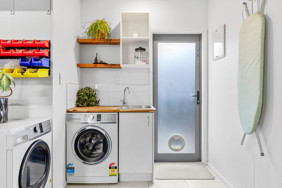 The double garage incorporates the laundry and handy storage, with off-street parking for two additional vehicles.