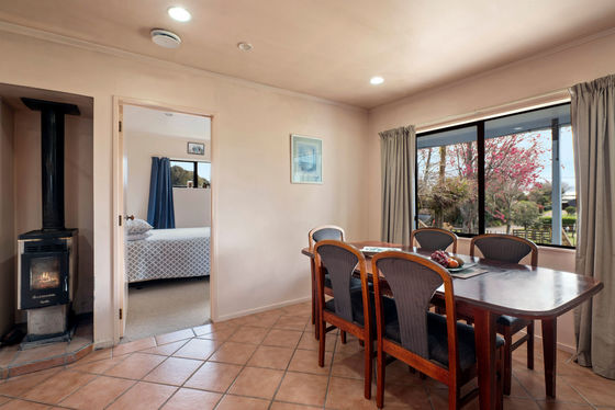 The living areas are open plan, cosy and easy to live in with views out across the paddock.