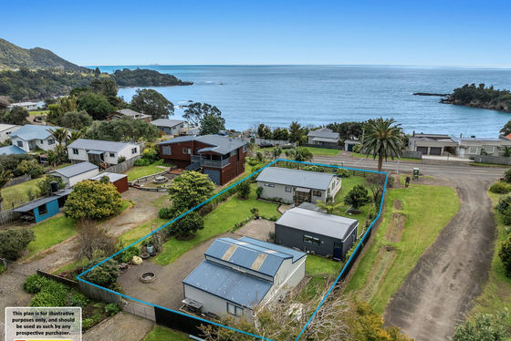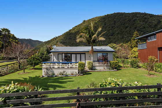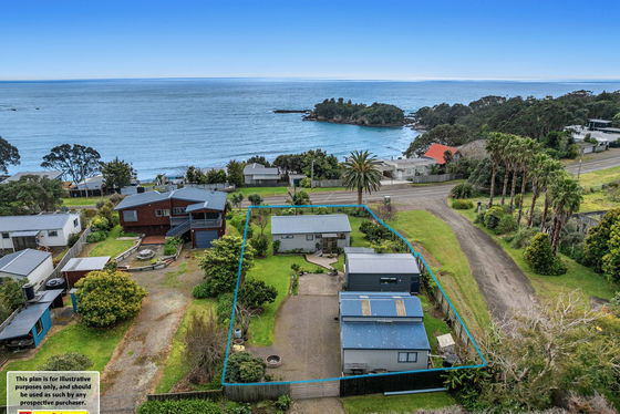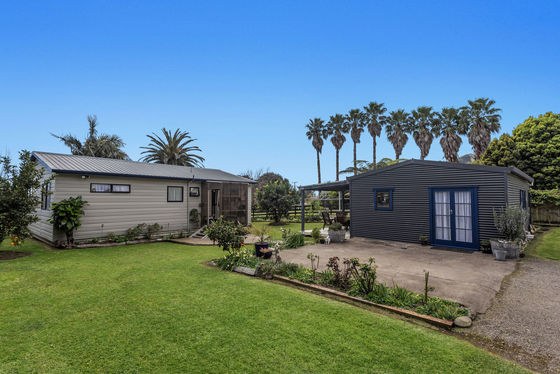 Centrally located on the section is a classic Kiwi bach, currently used for holiday stays. Simple, relaxed, and full of charm, this second dwelling offers open-plan living, a bathroom, laundry, and its own deck-perfect for enjoying the sound of the waves and the native birdlife that fills the air here.