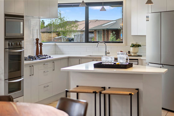 The open-plan dining and family area flows naturally into the kitchen, complete with a cooktop and dishwasher. A separate lounge provides a quiet retreat for relaxing evenings.
