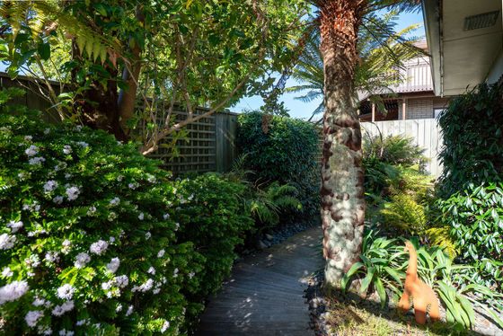 Outside, the established garden is a standout with lush greenery, raised planter beds, blossoming fruit trees, and a tranquil boardwalk walkway, creating a private retreat, the perfect spot for morning coffee, outdoor dining, or simply unwinding. A double internal-access garage offers secure parking and additional storage, making day-to-day living effortless. Extra paved off-street parking allows for the campervan or boat.