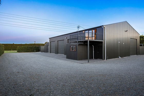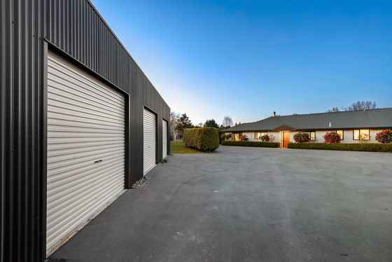 Shedding is where the property elevates its potential. Alongside a three-bay shed with three roller doors, power, lighting, cameras, and an attached garden shed, a vast total-span structure offers four high-clearance bays, lean-tos, heavy-duty concrete flooring, and four roller doors. Complete with office, studio, and toilet, it is entirely private from the home and designed to accommodate machinery, forklifts, or a full-scale business.
