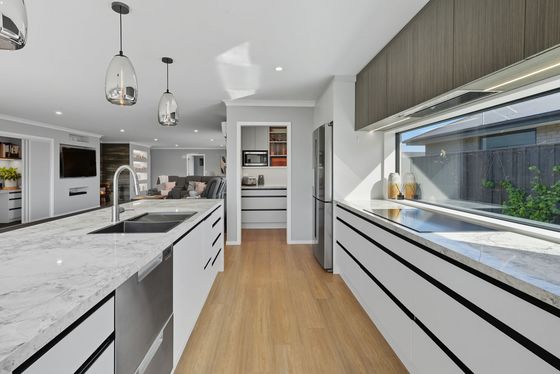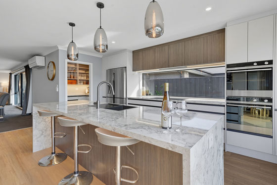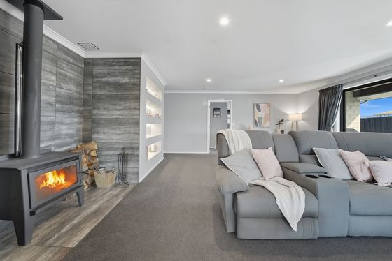 Step inside and prepare to be impressed. The heart of the home is an expansive open-plan living space, where a designer kitchen flows into the dining and lounge. Think double ovens, a walk-in pantry, and even a handy study nook - all perfectly set up for entertaining or simply unwinding by the wood burner.