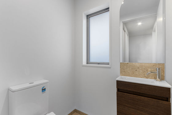 Ceramic tiles, carpet, and laminate plank Quick-Step flooring introduce a layered finish underfoot, with thermally broken, low-E glazing elevating performance throughout the home.