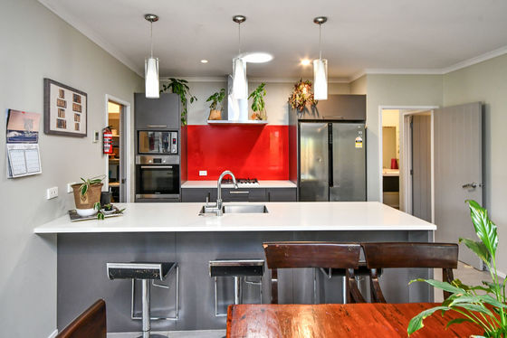 The heart of the home is a light-filled kitchen, complete with Bosch oven, dishwasher, gas cooking, walk-in pantry, and room for your double-door fridge. It's a kitchen designed to be both practical and stylish, flowing seamlessly into the dining and family area, where bi-folding doors open to two outdoor areas - the perfect backdrop for entertaining or soaking up the afternoon sun.